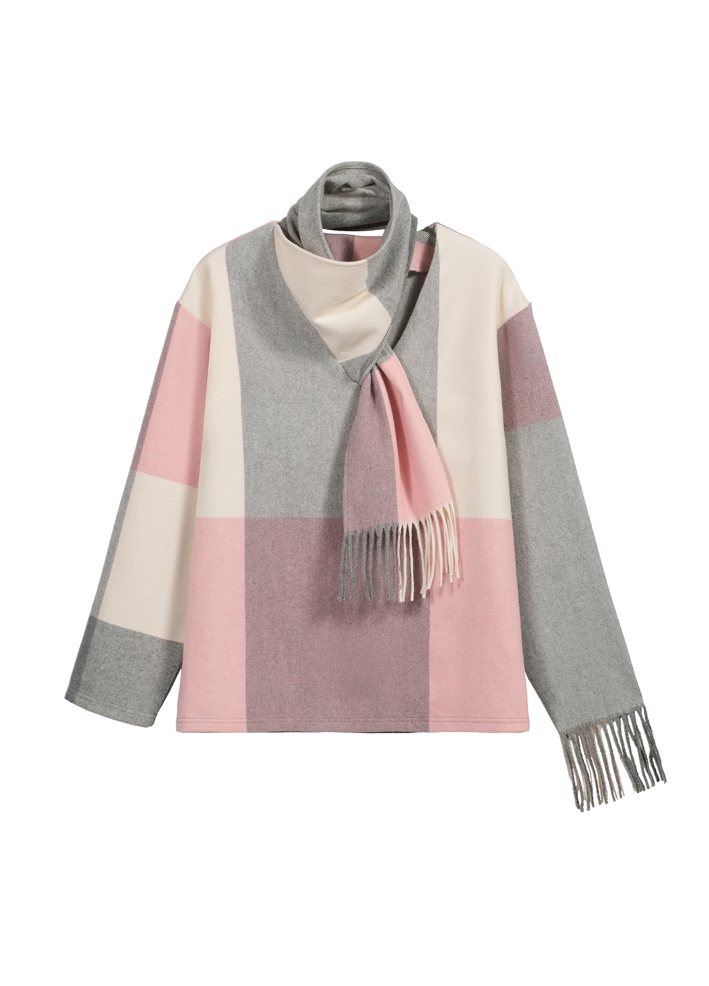 A coat made from a scarf containing wool.It is made of sheep wool blended fabric. The surface layer is rich in fine wool.